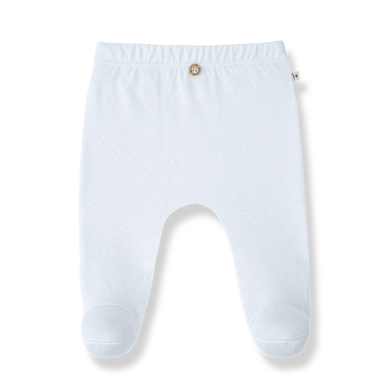 1+ in the family cotton baby set in light blue. the kimono-style top features long sleeves, buttons at the collar, and a graceful wrap tie for easy dressing. paired with matching footed leggings, this set offers comfort and style for everyday wear.