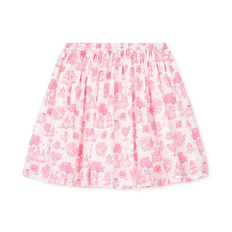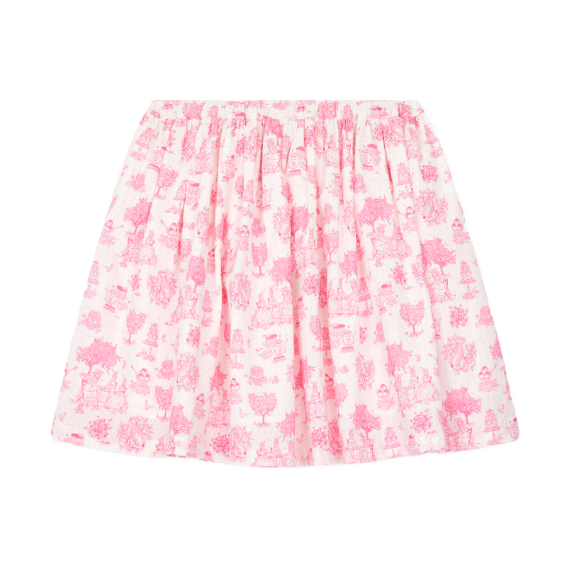 elevate her summer style with the bonton raspberry skirt toile de jouy! this playful skirt features a fun and flowy design, adorned with a pink toile pattern. plus, its elasticated waist provides ultimate comfort for all-day wear. the perfect addition to your wardrobe for a touch of charm!
