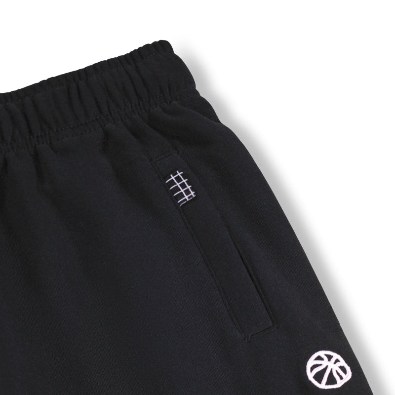 these molo black sweatpants feature a small basketball graphic embroidered on the hip for a playful touch. designed with an adjustable drawstring waist and ribbed ankles, they offer a comfortable, customizable fit perfect for everyday wear.
