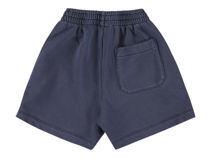 morley navy blue sweat shorts crafted from 100% cotton for breathable comfort. features a wide elasticated waist for a relaxed fit, dual side pockets for convenience, and a patch pocket at the back.