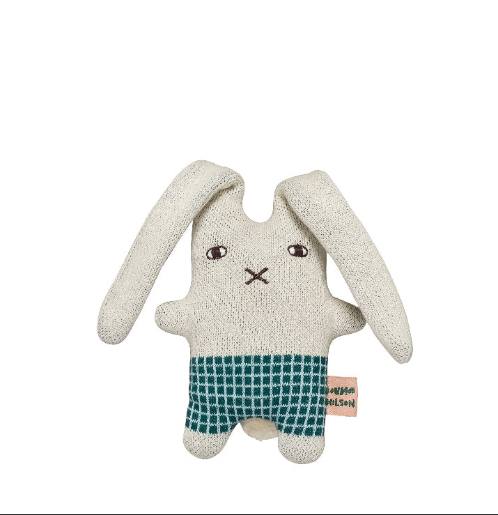 donna wilson bonnie bunny wee one knitted and hand embroidered using the softest organic cotton. each one has a unique personality, travels with a little passport, and comes packaged in a cotton drawstring bag.