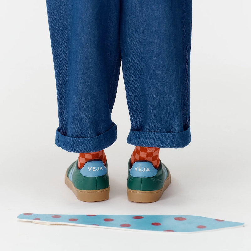 these veja volley sneakers combine organic traced leather and suede for a stylish, eco-conscious look. featuring a bio-based insole made with sugarcane and organic cotton, they offer comfort with sustainability in mind. the outsole blends amazonian rubber and mineral silica for durable traction, while recycled polyester linings and elastic laces add flexibility and breathability.