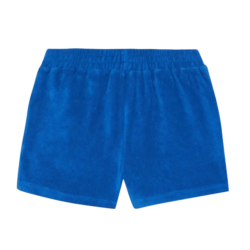 bonton terry cotton shorts in a vibrant summer blue, designed for comfort and easy movement. features practical front pockets for everyday essentials and a wide elasticated waist that provides a relaxed, adjustable fit.