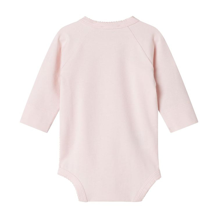 wrap your little one in comfort with this modal organic cotton blend bodysuit from marmar copenhagen. featuring long sleeves and a light pink tone, the belita wrap design makes dressing effortless with convenient push snaps and a ribbon tie closure.