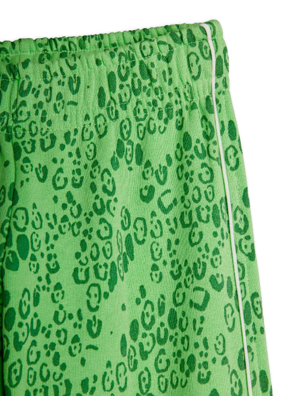 these green sweatpants from mini rodini feature a comfortable elastic waistband and a slim fit. they showcase a playful all-over leopard print with piping along the legs.