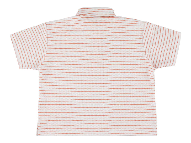 morley wim classic polo featuring orange and off-white stripes. crafted from soft, breathable 100% cotton, it offers comfort for everyday wear. the short sleeves and button placket provide a polished, versatile look that pairs effortlessly with any casual outfit.