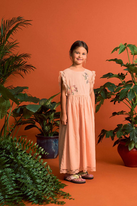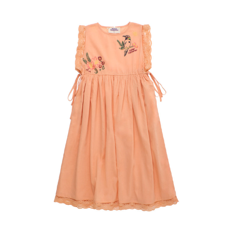 maison mangostan birds embroidered dress orange