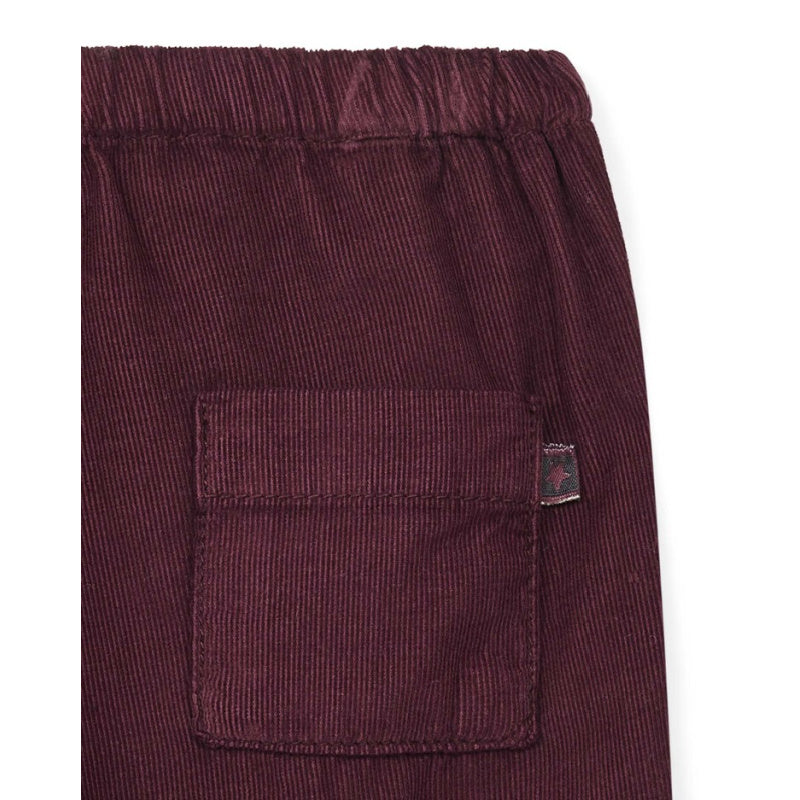 bonton futur corduroy pants in dark purple. features an elastic waistband and back pocket.