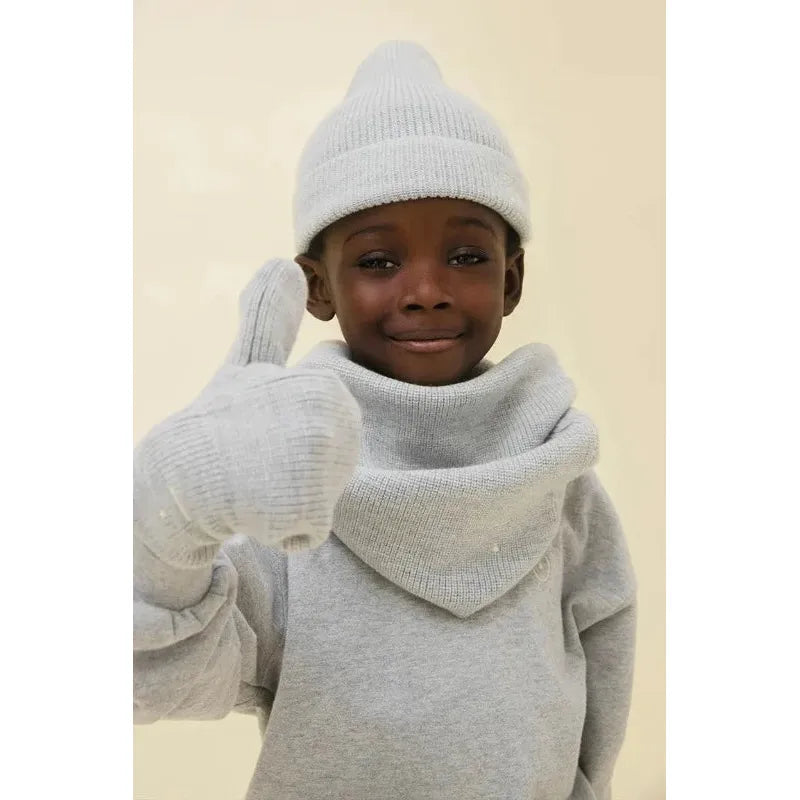 gray label knitted mittens in grey melange featuring the gray label logo on the wrist.