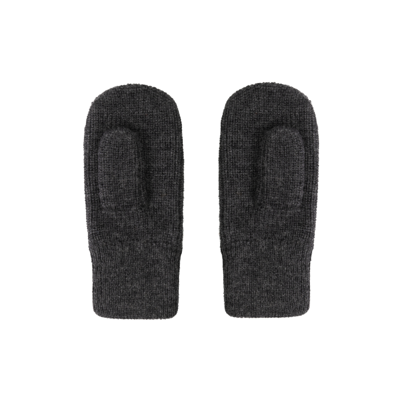 gray label knitted mittens in nearly black featuring the gray label logo on the wrist.
