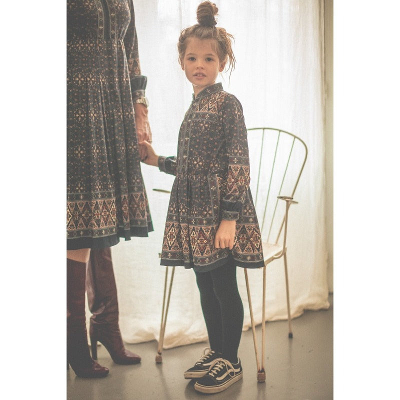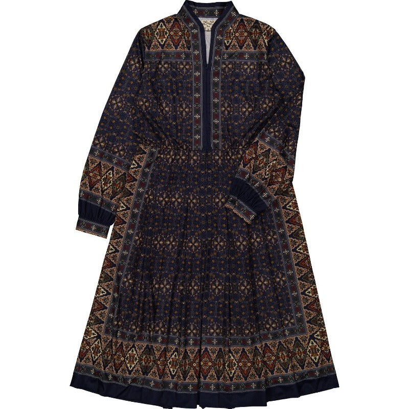 louis louise katharina dress for women in cashmere navy is a knee length mandarin collared dress with cuffed sleeves and gathered waist.