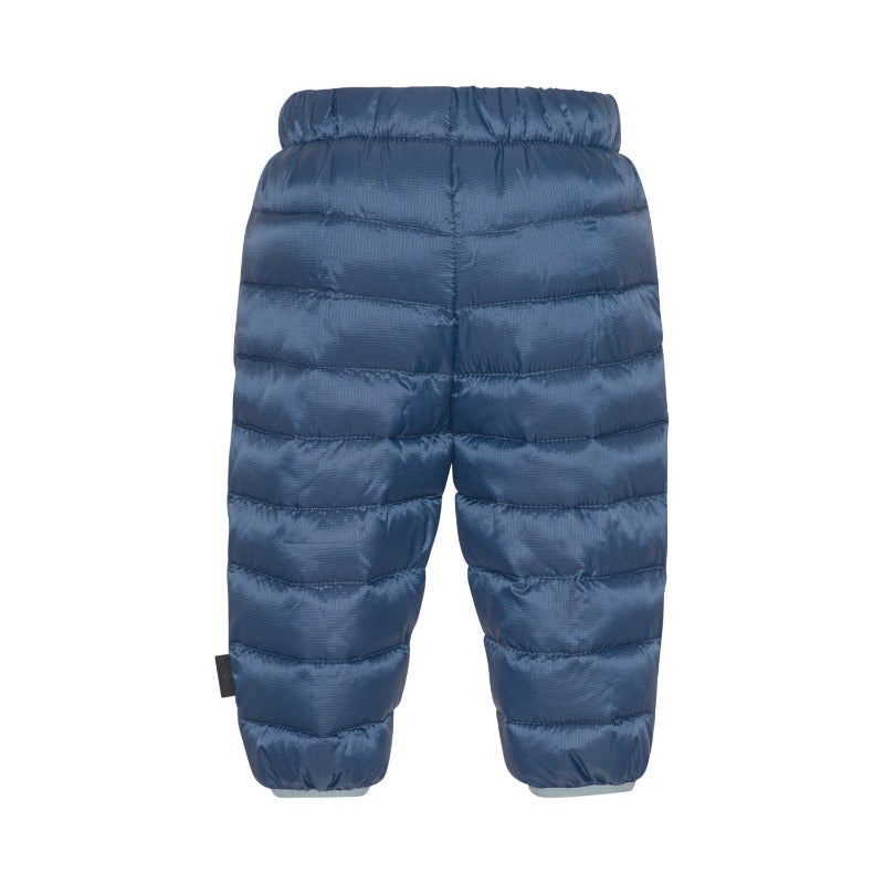 molo percy baby padded pants in dark blue. made from ultra-soft and hand inserted recycled poly down padding. the pants are water repellent and free of PFC.