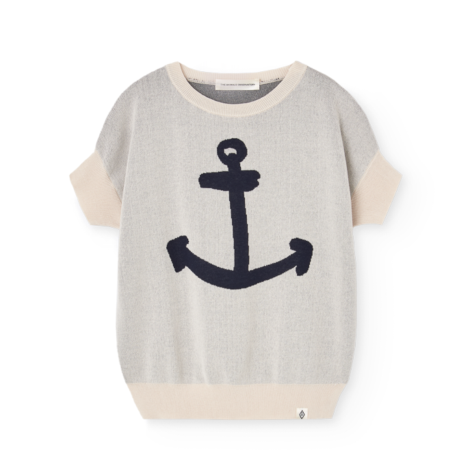 the animals observatory lightweight cotton knit sweater vest perfect for layering year-round. features a classic white base with an anchor motif on the front, ribbed edges, and short sleeves.