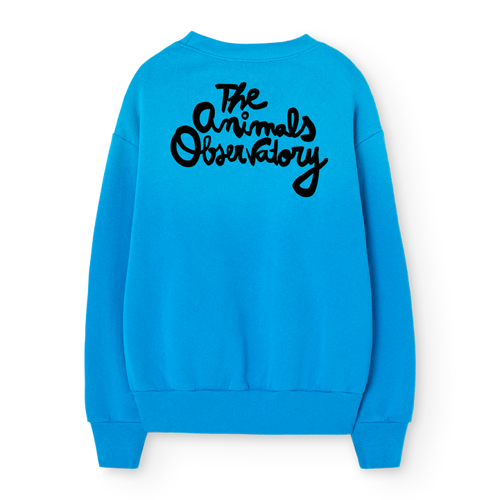 laid-back blue sweatshirt from the animals observatory. featuring a relaxed fit with dropped shoulders and ribbed edges, it's perfect for everyday wear. the chest displays a charming anchor graphic, while the back showcases the brand's signature script. soft, comfortable, and undeniably cool.