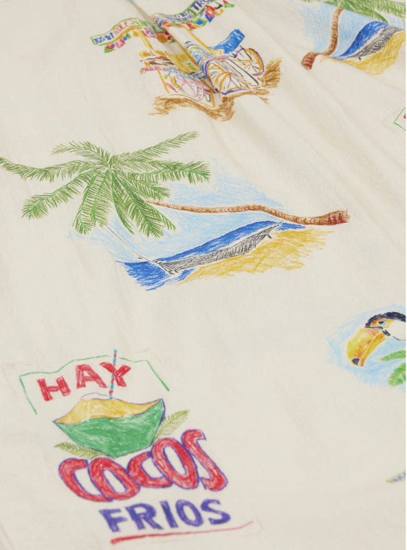 arsene & les pipelettes cocos frios baby shirt crafted from 100% cotton twill. the relaxed fit provides room to move and grow, while short sleeves keep things breezy. a center front button opening makes dressing easy, and the signature flag label at the side seam adds a subtle touch of character.