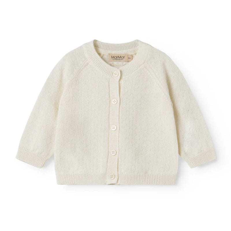 this thoughtfully designed baby set includes an open knit cardigan featuring a round neckline, ribbed edges, and scalloped detailing on the button placket, all crafted from a breathable organic cotton modal blend. the coordinating leggings feature a wide elasticated waist for a secure, comfortable fit.