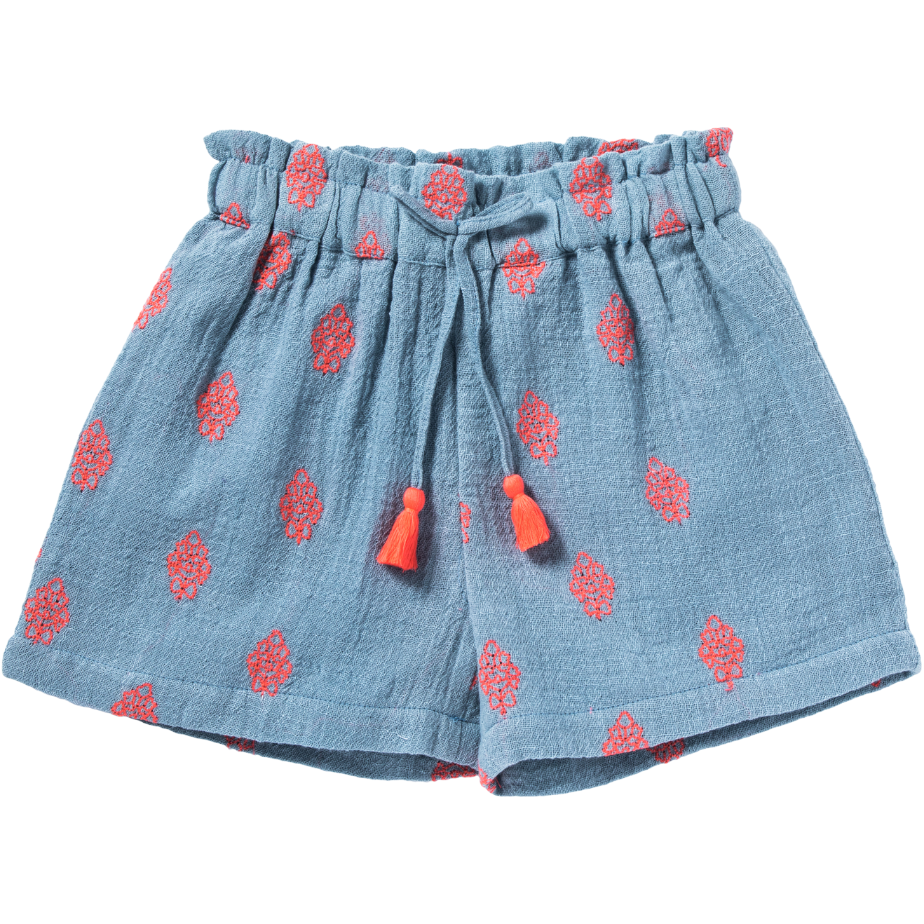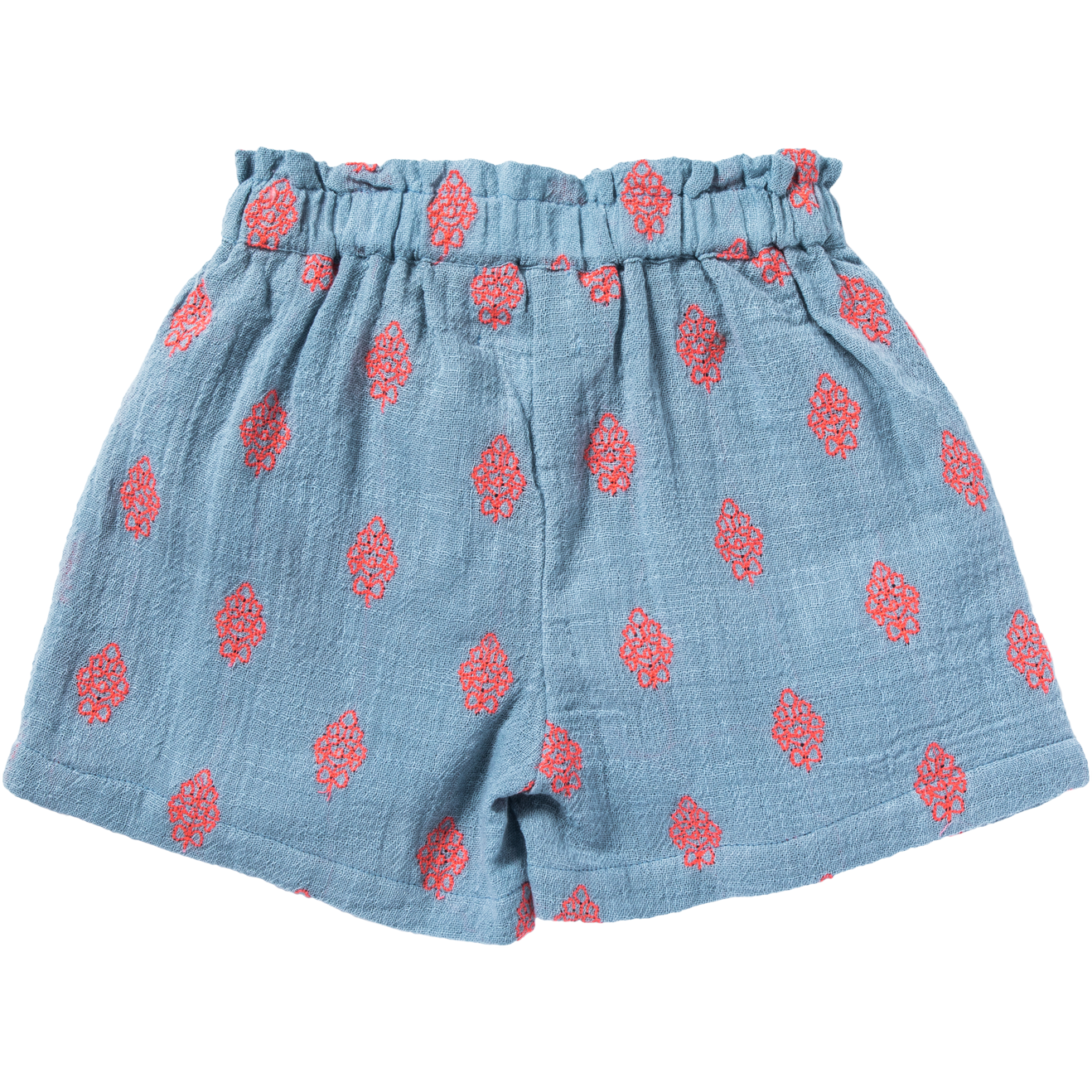 bonheur du jour ombeline shorts flowers blue. features include an elastic waist with tassel tie detail, floral motif embroidery throughtout, and relax fit with plain hem at bottom.