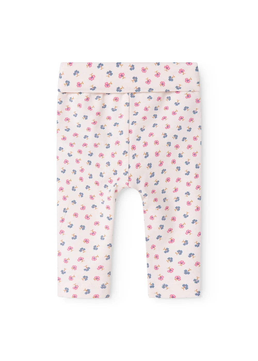 marmar copenhagen piva baby legging with all over blue and pink mini flower print. made from a soft blend of modal and and elastane, these white leggings feature a wide waistband and a regular fit.