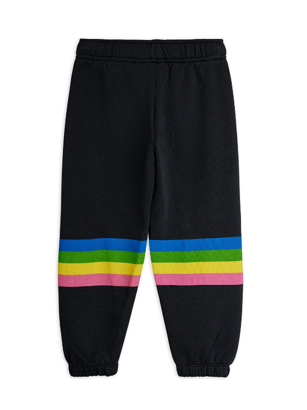 mini rodini cozy sweatpants featuring a relaxed fit perfect for active kids who need room to move. the soft organic cotton construction keeps things comfortable all day long, while the elastic waistband and leg openings ensure a secure fit. fun alien print at the hip pairs with striped detailing across the lower legs for a playful look that kids will love wearing.