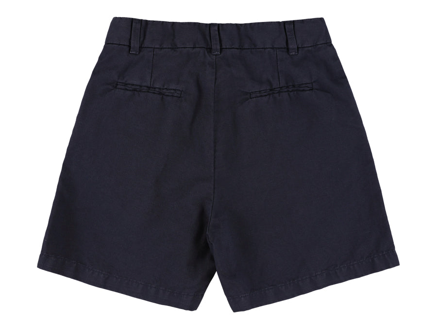 morley classic navy chino shorts built for active boys. crafted from soft, breathable 100% cotton, these shorts feature a traditional button fly closure, belt loops for a secure fit, and practical front pockets plus back slash pockets for everyday essentials.