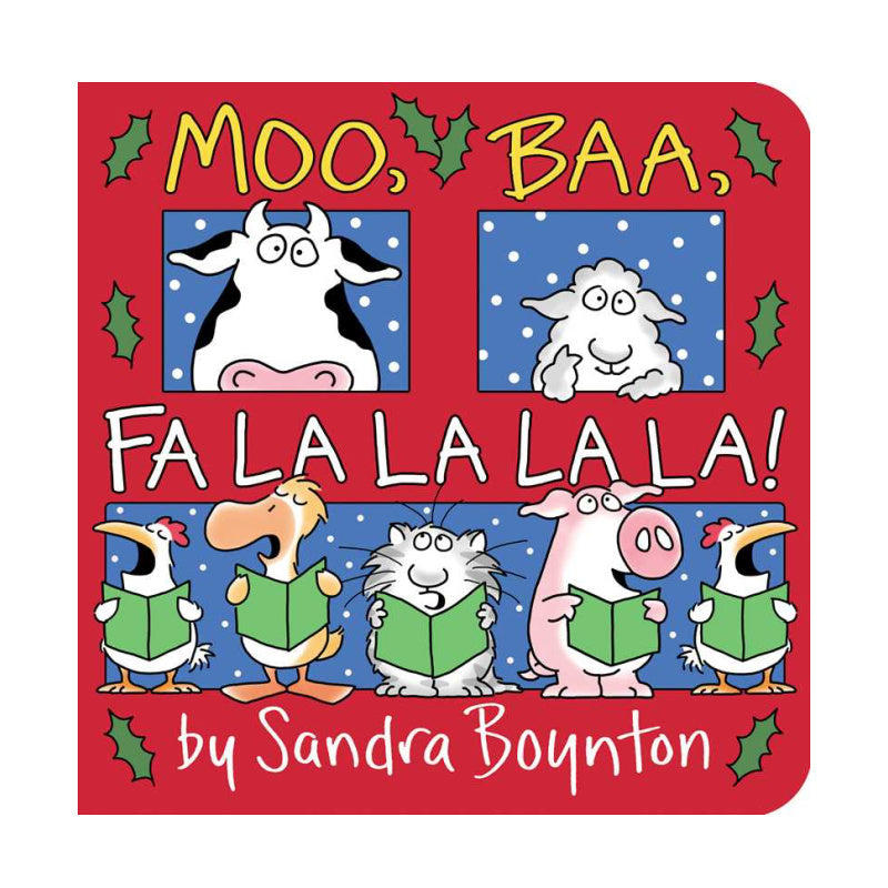 a brand-new christmas board book from the beloved and bestselling sandra boynton that will have everyone singing FA LA LA LA LA! ‘tis the season to be jolly, so sing along with caroling sheep, giggling pigs, and dancing cows as they celebrate christmas with this merry tune.
