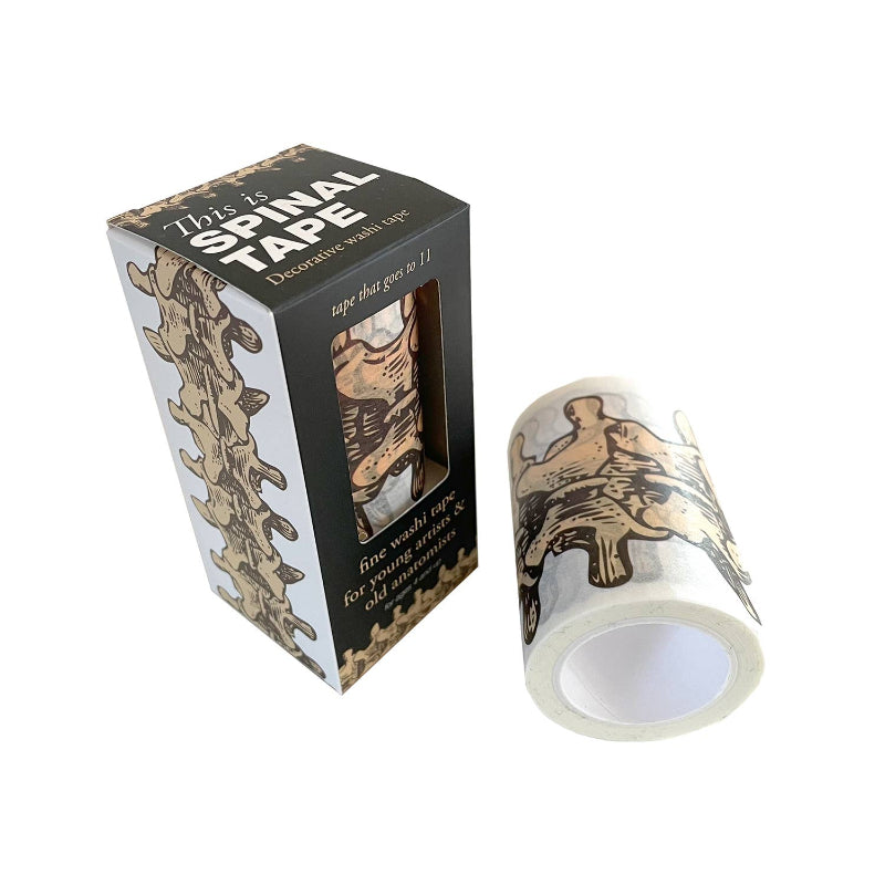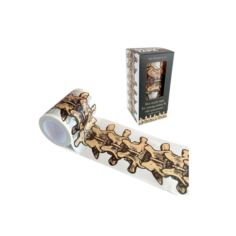 fine washi tape for young anatomists & old artists (and all in between!). put your spine into all your projects and the backbone of your artistic endeavors. securely sticks to most surfaces, but is easy to reposition & remove without leaving any sticky residue. this tape is 2-3/4 inch wide and 10 meters long- perfect for birthday gift bags, stocking stuffers, or any time you need a little STEM anatomy tape.
