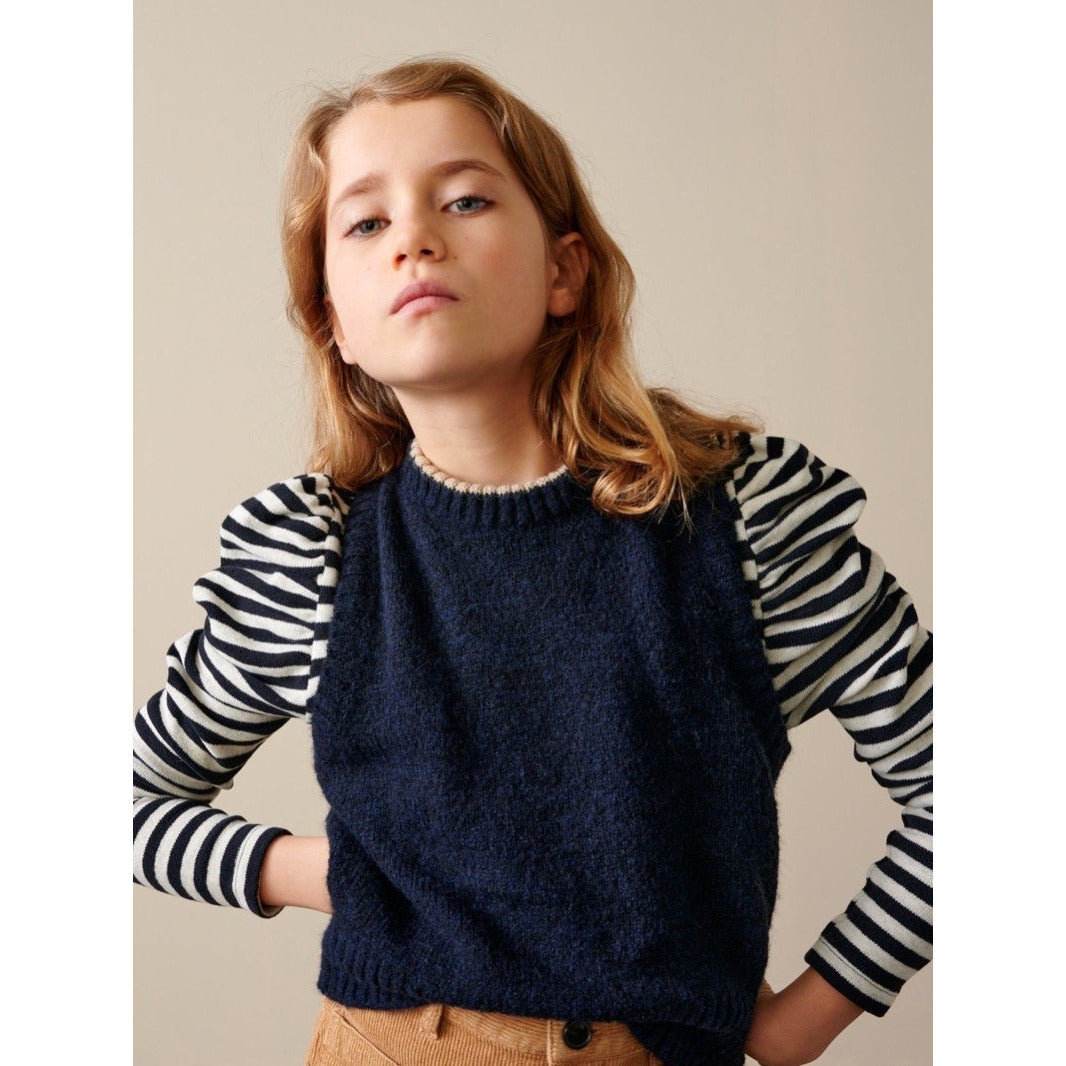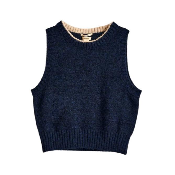 the classic sleeveless knit takes a turn for the best with the addition of a contrasting edge along its crew neck collar. this perfect add-on is made in italy with a touch of wool for a little extra warmth. it can be layered over a button-down shirt, or on top of her favorite dress for a polished yet winter-proofed look.