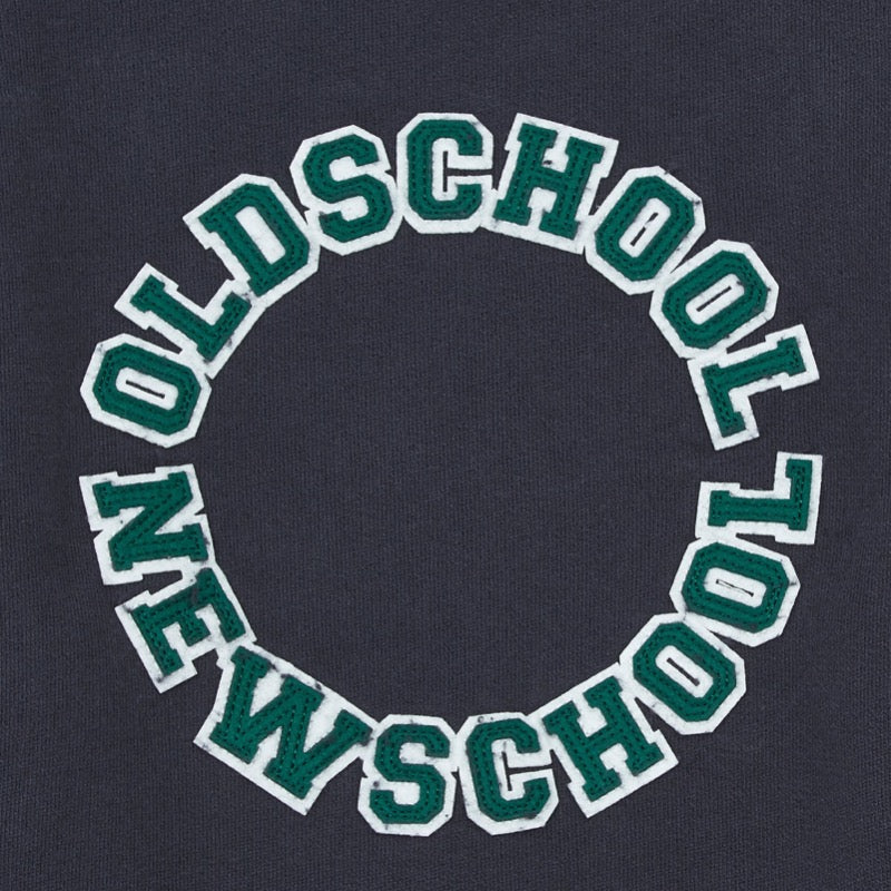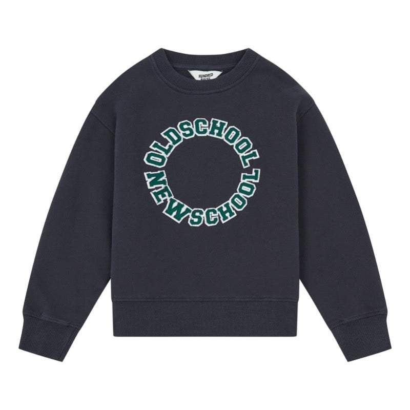 hundred pieces old school sweatshirt in black has long sleeves, a high neck, and large "old school new school" printed on the front.