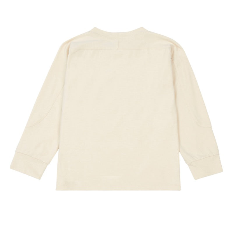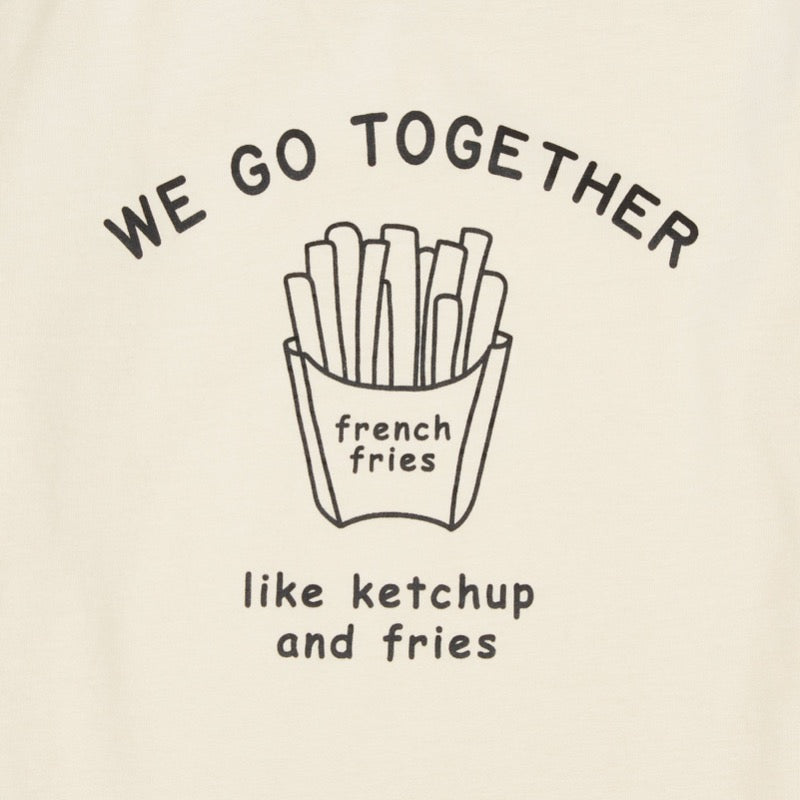 hundred pieces organic cotton t-shirt in cream. this comfy long sleeved graphic tee features a round neck style with "we go together like ketchup and fries" on the front.
