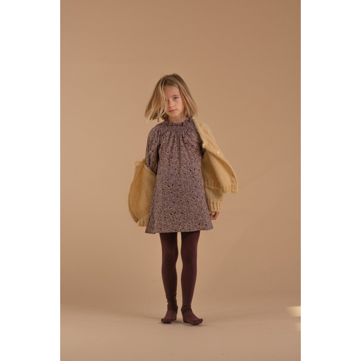 long live the queen limited edition mini dress made from up cycled cotton material. features a high smocked neckline with lace trim, gathered elasticized cuffs, sash belt and a beautiful all over grape floral print.