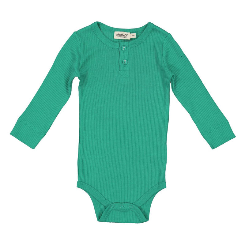 marmar copenhagen long sleeve baby body in grass crafted with oeko-tex certified materials which is ultra-soft and perfect for sensitive skin. featuring buttons on the front and snap button closure between the legs.