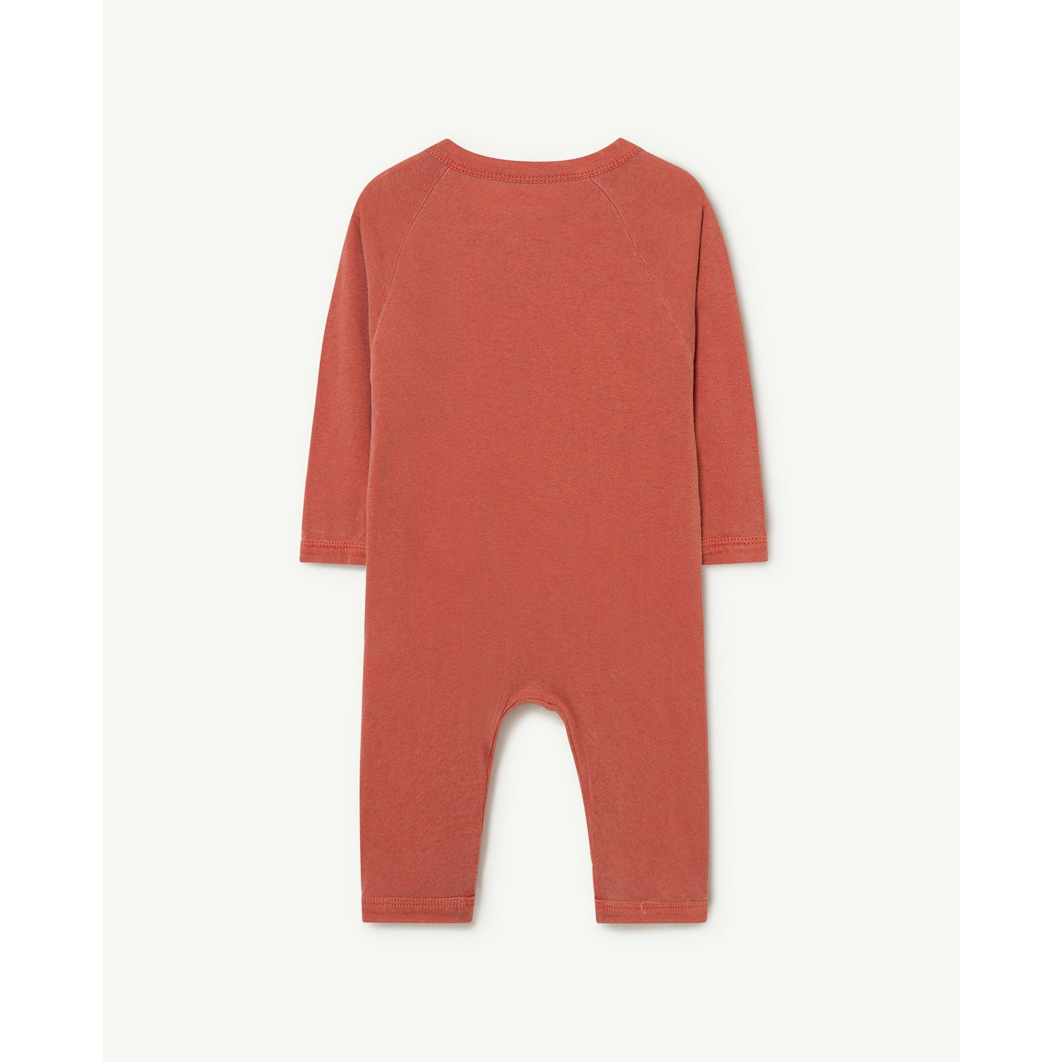 the animals observatory owl baby one piece in pink with all over red cherries print. made with ribbed edges, a rounded neckline and snap button closures on the shoulder and inner legs for easy changes.