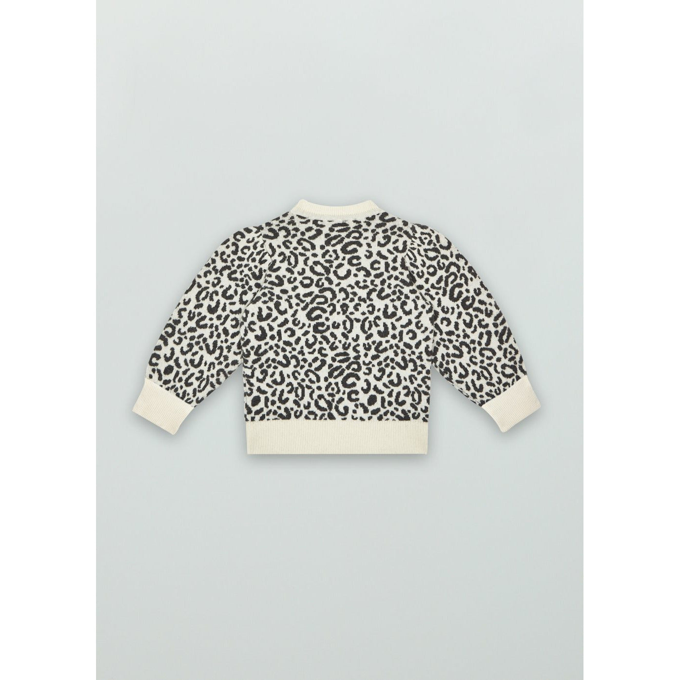 the new society women's sweater, knitted animal leopard print. made with recycled wool.