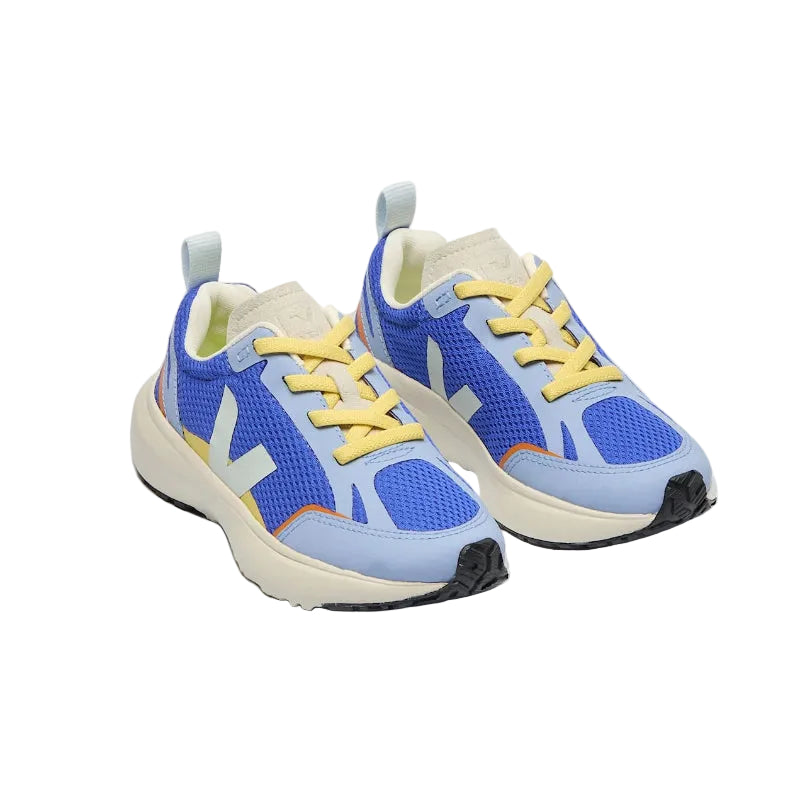 veja canary alveomesh running shoe in green. this sustainably-made running shoe is lightweight and comfortable with a mesh upper and rubber soles.